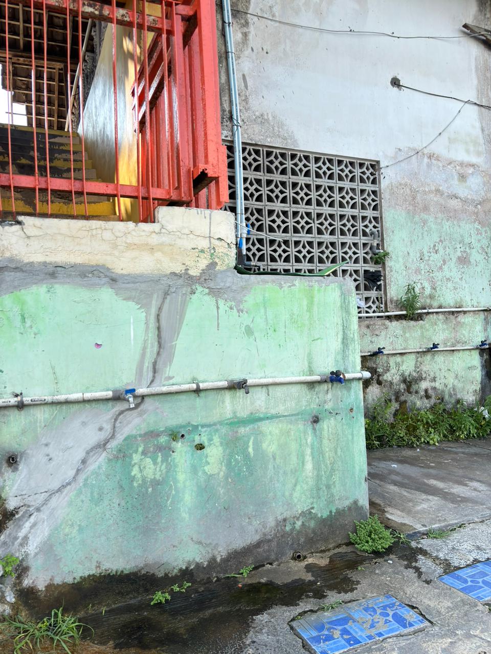 Area wudhu dilengkapi dengan dua tandon air berkapasitas besar serta dua kolah air utama yang memastikan ketersediaan air bersih setiap waktu.