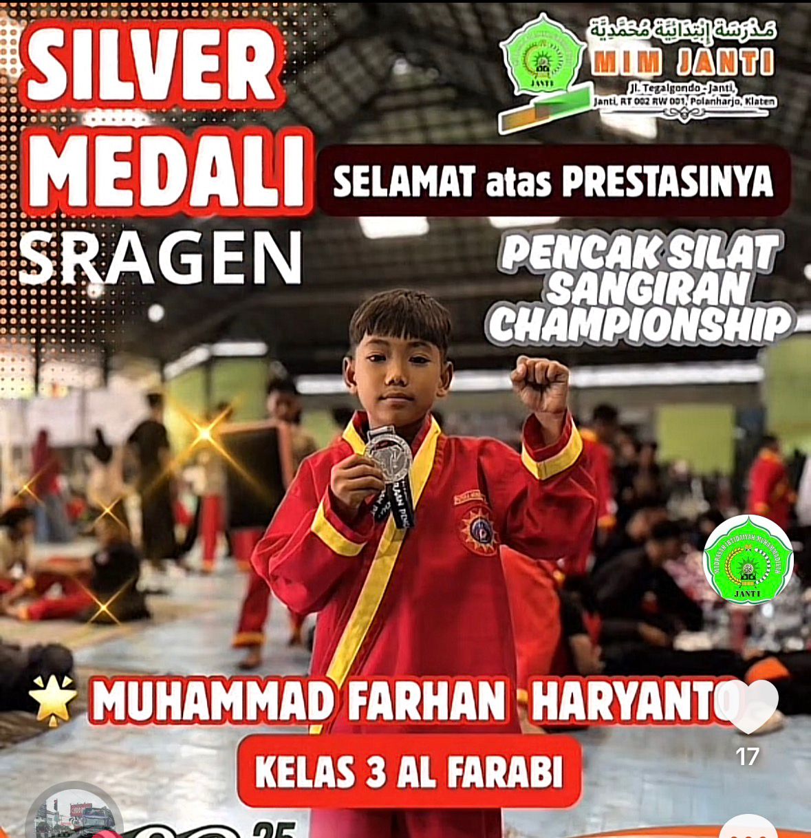 Dalam turnamen pencak silat tingkat pelajar tersebut, dua siswa MIM Janti berhasil membawa pulang medali: